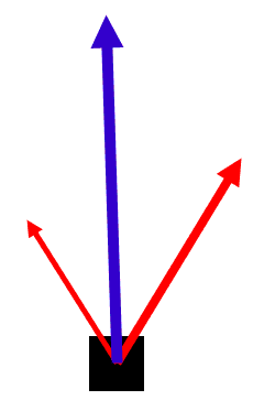 The last section explained the logistics of combining two vectors. Let us examine a real world problem. Kim and Noah decide to move a large weight by tying ropes to it and pulling it. Kim's rope is at a 130 degree angle and she pulls at 30 Newtons. Noah's rope is at 65 degrees and he pulls with a 40 Newton strength. If we place these two forces together, what is the resultant force on the weight? First, we could use a diagram.